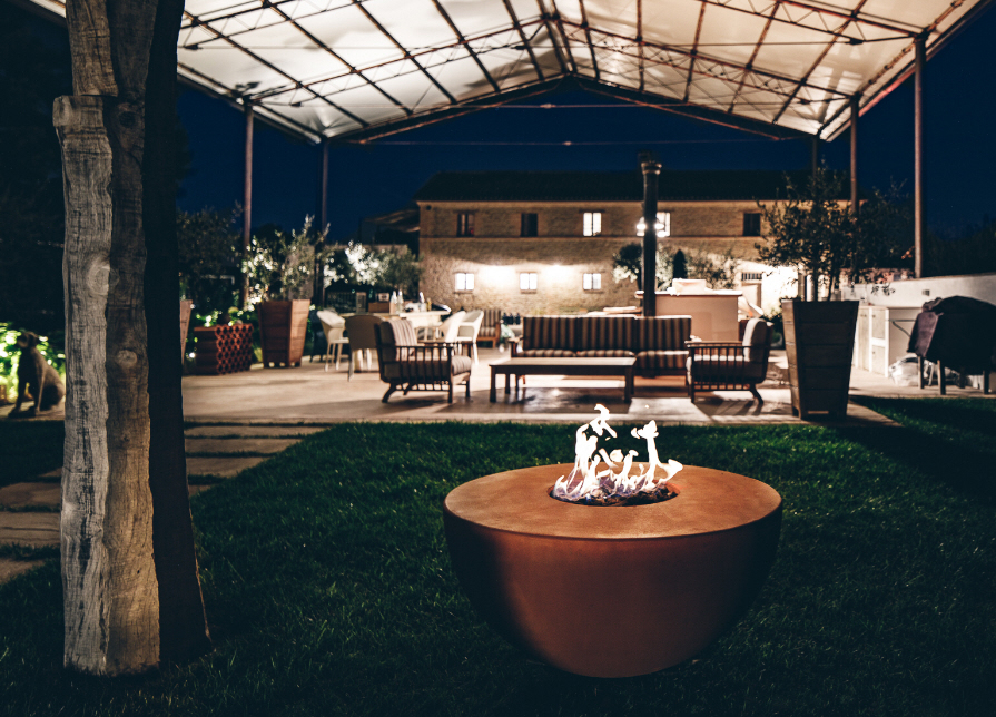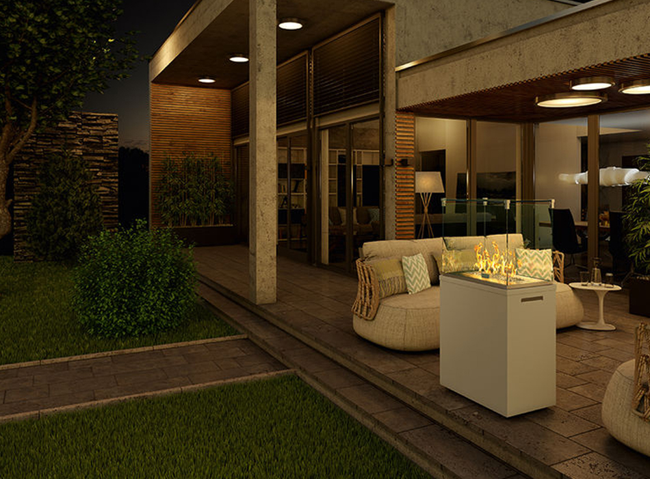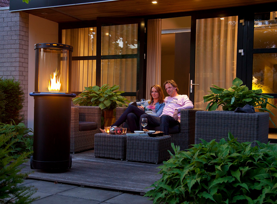Außenkamine gibt es in vielen verschiedenen Ausführungen und sie können mit (meist Propan-) Gas, Holz oder Bioethanol befeuert werden.